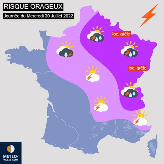 Prévisions du risque orageux pour la journée du mercredi 20 juillet 2022 - Météo Villes