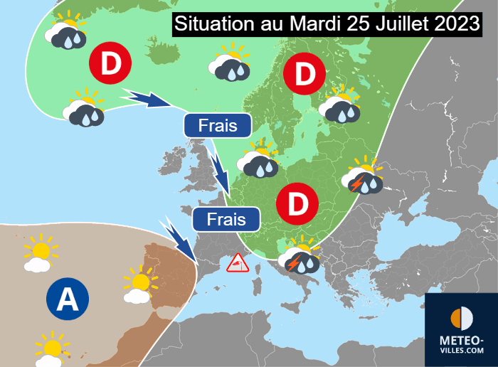 Situation à échelle continentale ce mardi 25 juillet 2023 - Météo Villes