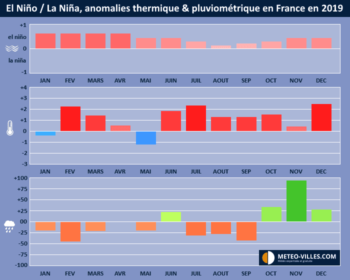 Phases d'El Niño / La Niña et anomalies thermique & pluviométrique en France en 2019 – Météo Villes
