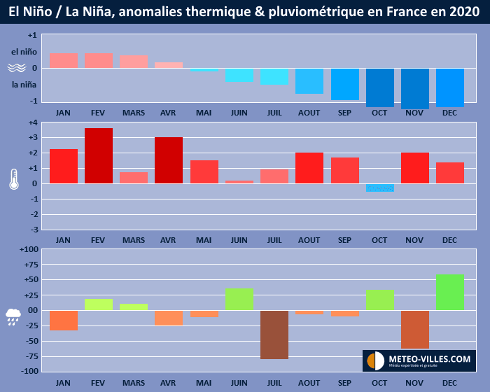 Phases d'El Niño / La Niña et anomalies thermique & pluviométrique en France en 2020 – Météo Villes