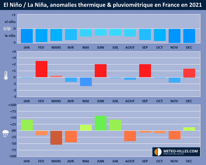 Phases d'El Niño / La Niña et anomalies thermique & pluviométrique en France en 2021 – Météo Villes