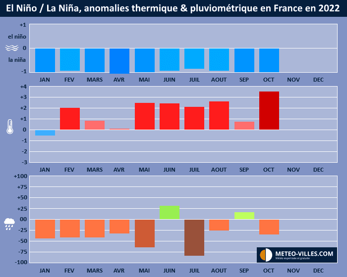 Phases d'El Niño / La Niña et anomalies thermique & pluviométrique en France en 2022 – Météo Villes