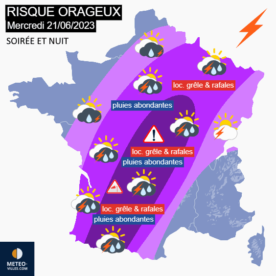 Risque orageux en France pour le mercredi 21 juin 2023 - Météo Villes