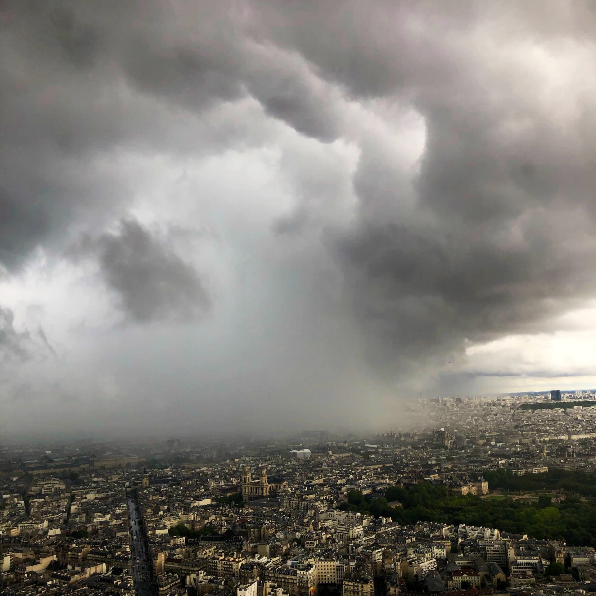 Arrivée d'un fort orage sur Paris depuis la tour Montparnasse - 28 juillet 2023 - Twitter Ruben Hallali