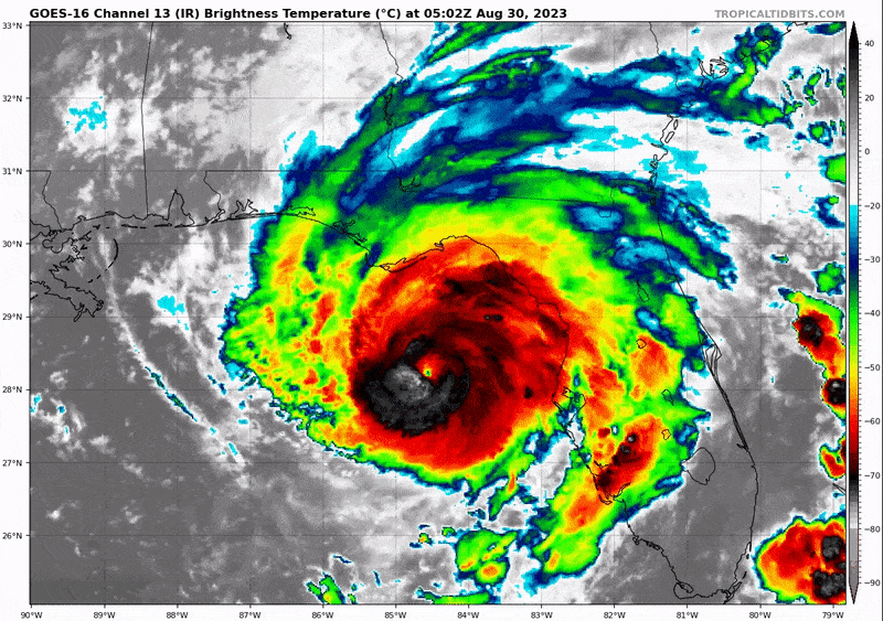 Ouragan Idalia en catégorie 4 à l'approche de la Floride ce mercredi 30 août 2023 - via tropicaltidbits.com