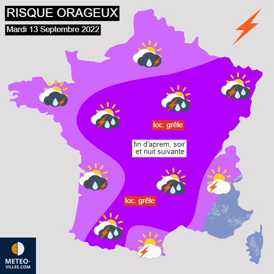 Risque orageux en France pour le mardi 13 septembre 2022 - Météo Villes
