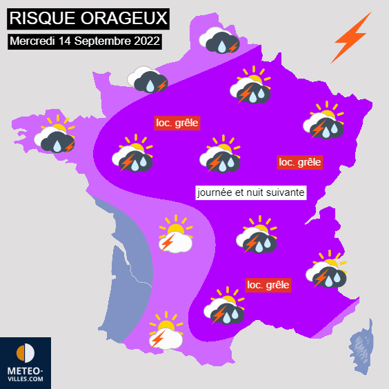 Risque orageux en France pour le mercredi 14 septembre 2022 - Météo Villes