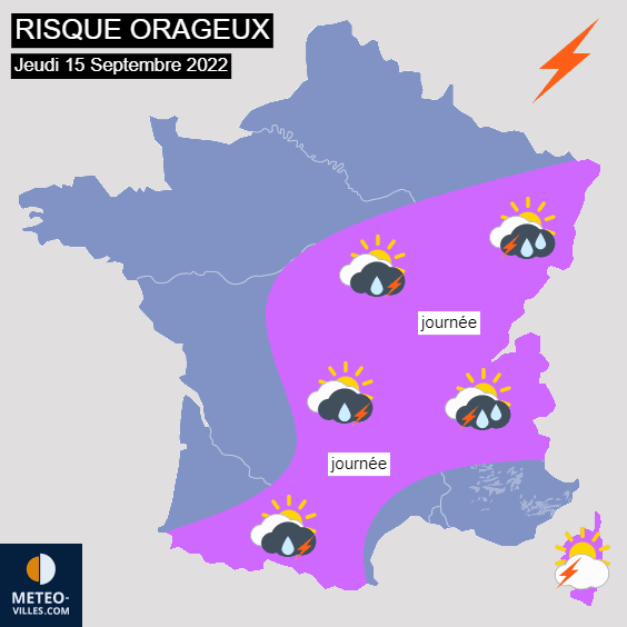 Risque orageux en France pour le jeudi 15 septembre 2022 - Météo Villes