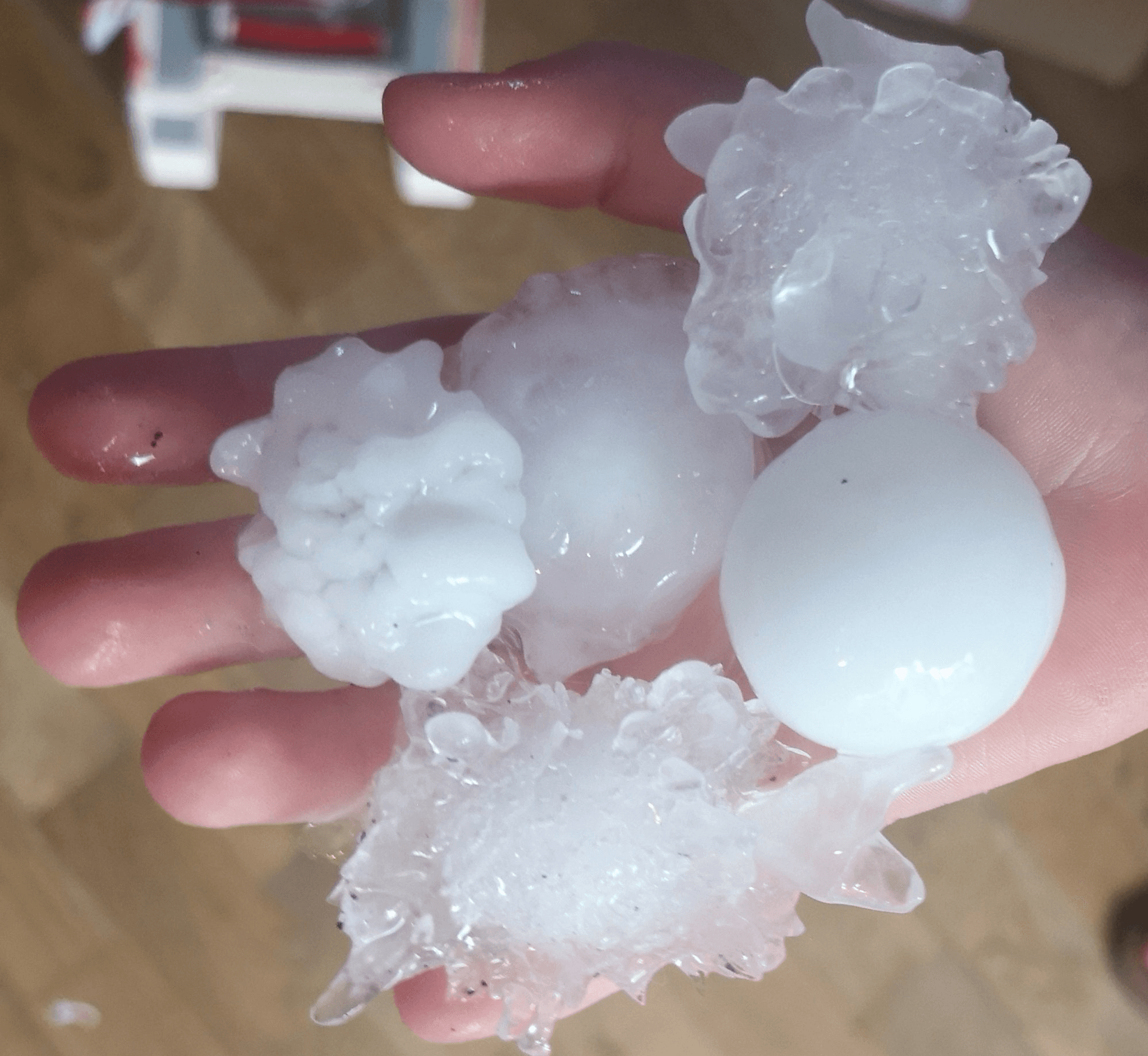 Grêlons de 8 cm de diamètre à Val-Cenis (Savoie) ce mercredi 12 juillet 2023 - photo Marion Guy via Météo Alpes