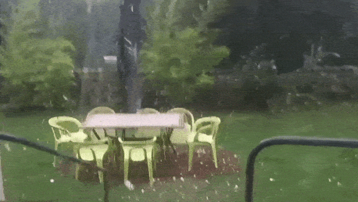 La deuxième supercellule a produit des chutes de grêle tout aussi violentes, particulièrement dans le centre du département de la Drôme. Sur la commune de Saillans, l'orage a atteint des intensités remarquables. Comme le montrent les images ci-dessous, des grêlons de 8 centimètres de diamètre se sont abattus sur cette ville drômoise, rebondissant dans les jardans dans un fracas assourdissant.