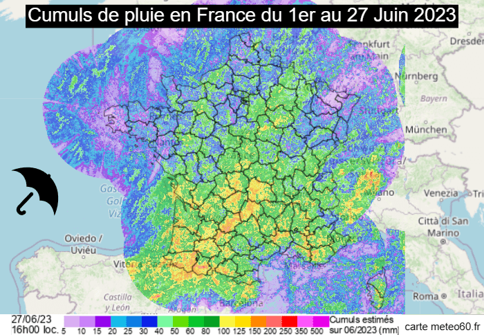 Estimation des cumuls de pluie entre le 1er et le 27 juin 2023 - via meteo60.fr