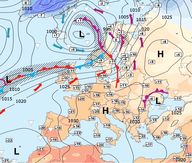 + Jeudi après-midi, de l’air froid en provenance de Scandinavie arrivera sur les côtes de la Manche et de la Mer du Nord avec une baisse significative des températures